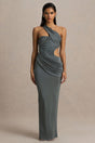 Serefine | Grey Asymmetric-Neck Maxi Dress With Body Cut-Out