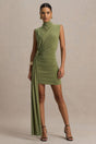 Sorenna | Olive High-Neck Mini-Dress With Wrap And Sash Detail